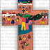 pés estendidos e atados a uma cruz. Duas asas elevavam-se por cima de